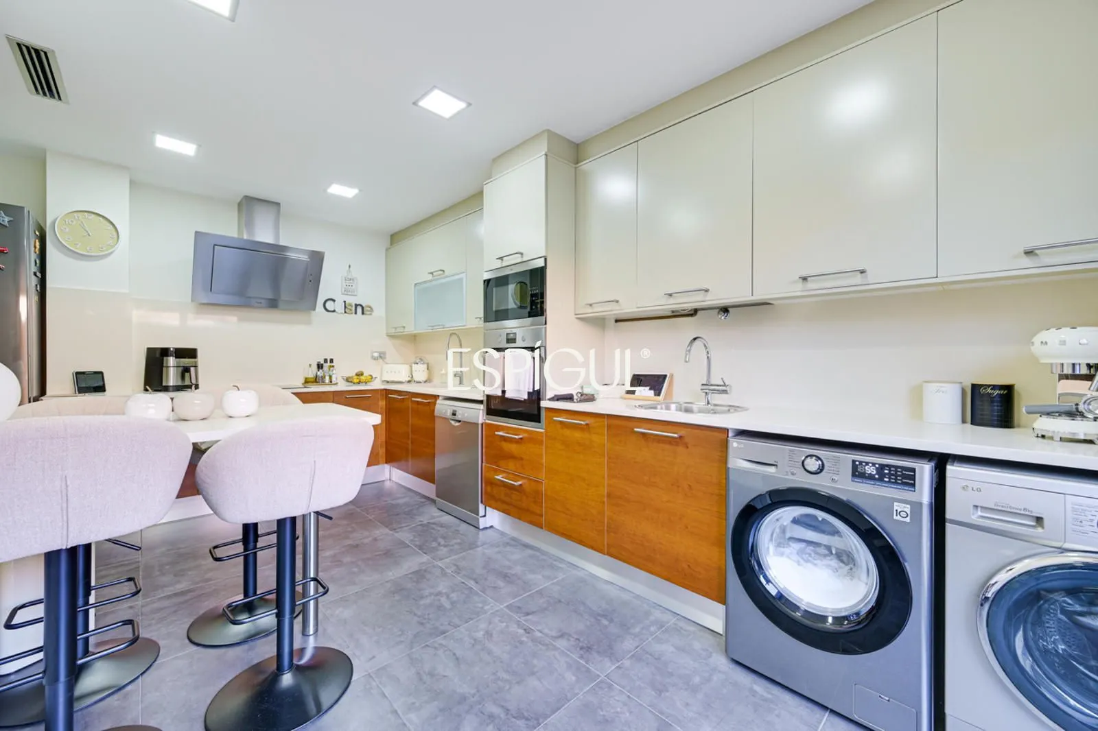Что касается оснащения, дом предлагает высокий уровень комфорта: канальное кондиционирование и отопление, газовое отопление, солнечные панели, система сигнализации, видеодомофон, система «умный дом» и возможность установки лифта.
